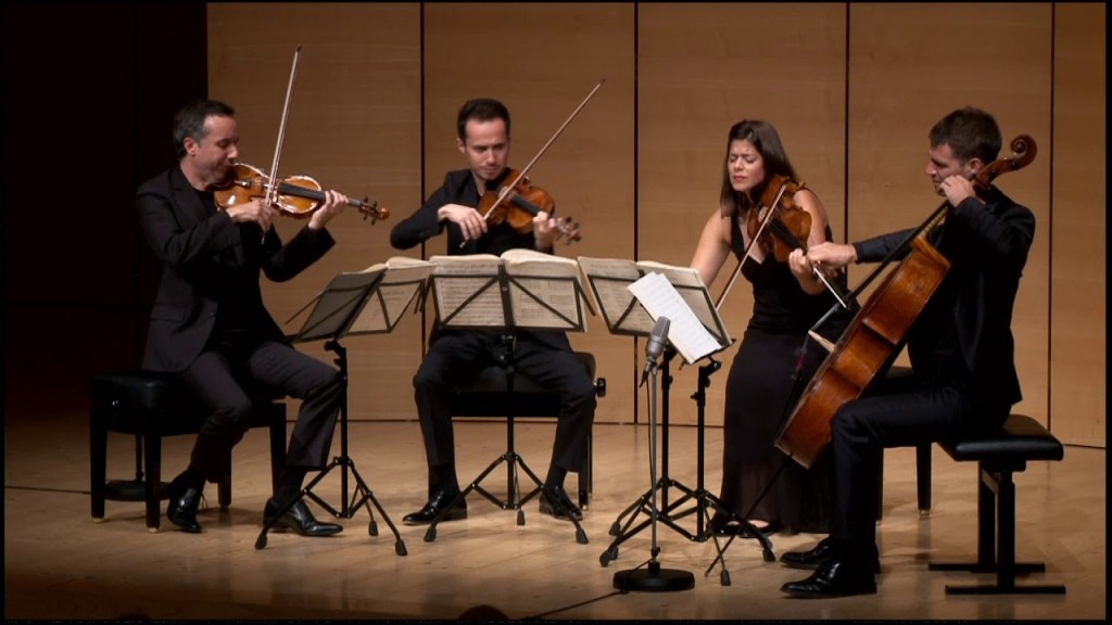 Si je t’écoute avec une telle émotion, c’est aussi sans doute parce que tu es riche du plaisir sensuel de la forme en même temps que de la violence faite à cette forme au nom de…j’allais dire au nom de L’Esprit, mais je dirai au nom du créateur. Car lorsque tes quatre instruments jouant à l’unisson- sommet et couronnement des quatuors !- atteignent à chaque instant les plus enivrantes harmonies et serpentent en modulations voluptueuses, soudain une main sévère, brutale, impitoyable même, fait violence à cette volupté et te force à des notes stridentes et aigues, à ses sauts inattendus et à une dure économie dans l’expression, à un ascétisme qui vise à la métaphysique ; à une tension entre les registres les plus bas et les plus hauts qui est aspiration à une réalisation plus lointaine, plus élevée. Soudain tout se tait. Le disque est terminé. Point. Point final.
