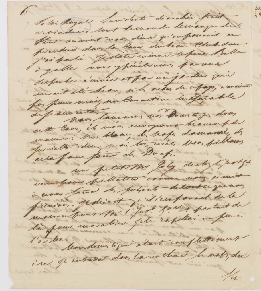 L’impossibilité nous arrêta net ; on fit faire demi-tour. Comme je pensais au grand spectacle que je voyais, j’oubliai un Instant que j’avais fait faire demi-tour à ma voiture avant les autres. J’étais harassé, je marchais pied, parce que ma voiture était comblée des pillages de mes domestiques et que le foireux y était juché. Je crus ma voiture perdue dans le feu. François fit là un temps de galop en tête. La voiture n’aurait couru aucun danger, mais mes gens, comme ceux de tout le monde, étaient ivres et capables de s’endormir au milieu d’une rue brûlante.