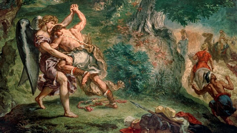 Jazzi, comme mon commentaire sur la place Saint Sulpice ne passe pas sur la RDL, voici, sur mon blog, ce que j’écrivais pour toi. Au cours de ses nombreuses ses promenades dans Paris, alors qu’il savait qu’il ne lui restait que peu de mois à vivre, donc dans ce « Dimanche m’attend »(1965) , Jacques Audiberti ,niçois fils de maçon, arpente la Rive gauche aussi bien que la Rive Droite. Il a les poches de son pardessus bourrées de carnets noircis de notes. Souvent il file vers la place Saint-Sulpice. Il aime cet endroit et précisément le tableau de Delacroix, perché dans l’église, ce Jacob qui lutte avec l’ange avec des mollets de footballeur. Il est placé pas loin de l’entrée. Mais il ne l’aime ce tableau que dans la pénombre. Les éclairages l’insupportent . Il écrit donc page 174 :