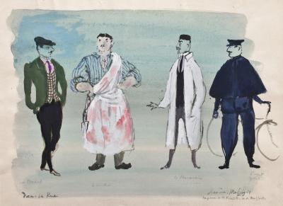 En fait, le plus souvent je traînais dans les rues de Quimperlé avec mon carnet à spirale et mon crayon ,surtout du côté des quais et des ponts de pierre. J’observais les scènes de la vie de province et en particulier j’étais fasciné par tout ce que je voyais de la fenêtre de ma cuisine. Elle surplombait une impasse .Cette allée mal goudronnée me surprenait à toute heure, ça devenait ma une scène de théâtre avec ses curieux habitants . J’étais dans une loge.
