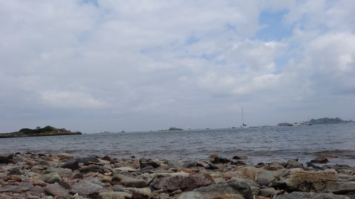 Des buissons de pourpiers argentés bordent la route étroite de la presqu’île. Ce matin là le ciel sans nuages avait quelque chose de brumeux l’autre côté de la baie.