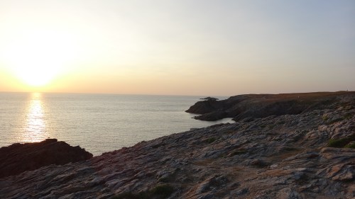 L’immensité du ciel , son bleu violent, le calme de la mer, le bruit du ressac ,l donnaient l’impression que le monde était toujours en train de se refaire. Les cassures et les strates des rochers régulièrement couverts d’une eau pale suggéraient une étrange proximité avec des Temps Originels.