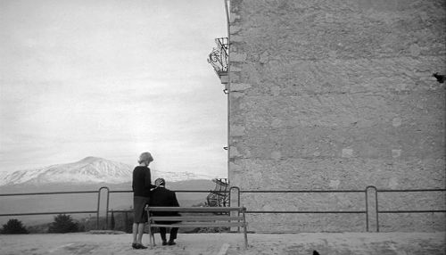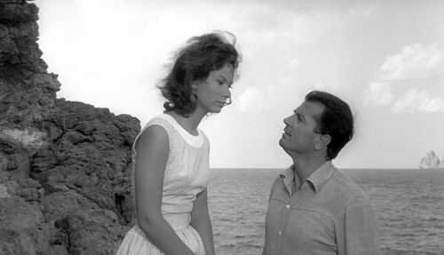 Une occasion de redécouvrir ce film capital. La copie restaurée surprend dans la haute définition de l’image . Par exemple le travail d’Antonioni pour mettre en évidence la beauté minérale, les strates, les linéaments, les différences de densité des paysages siciliens. La passion du cinéaste pour les paysages gris sur gris dans leur dure minéralité, sur cette ile caillouteuse de Lisca Bianca (elle fait partie du groupe d’îles volcaniques des Éoliennes) permet au cinéaste de rappeler le vieux coeur indifférent de la terre qui couve jour et nuit, dans les ravins, les pentes caillouteuses, , préserve les choses secrètes -comme le ressac des vagues sur les rochers- qui nous fascinent, nous inquiètent depuis notre enfance ,comme si, dans ces images, quelque chose de sombre, d’oublié, passait entre les personnages pour leur rappeler leur caractère éphémère et leur errance , que renforce la disparition d’Anna, jouée par Léa Massari.